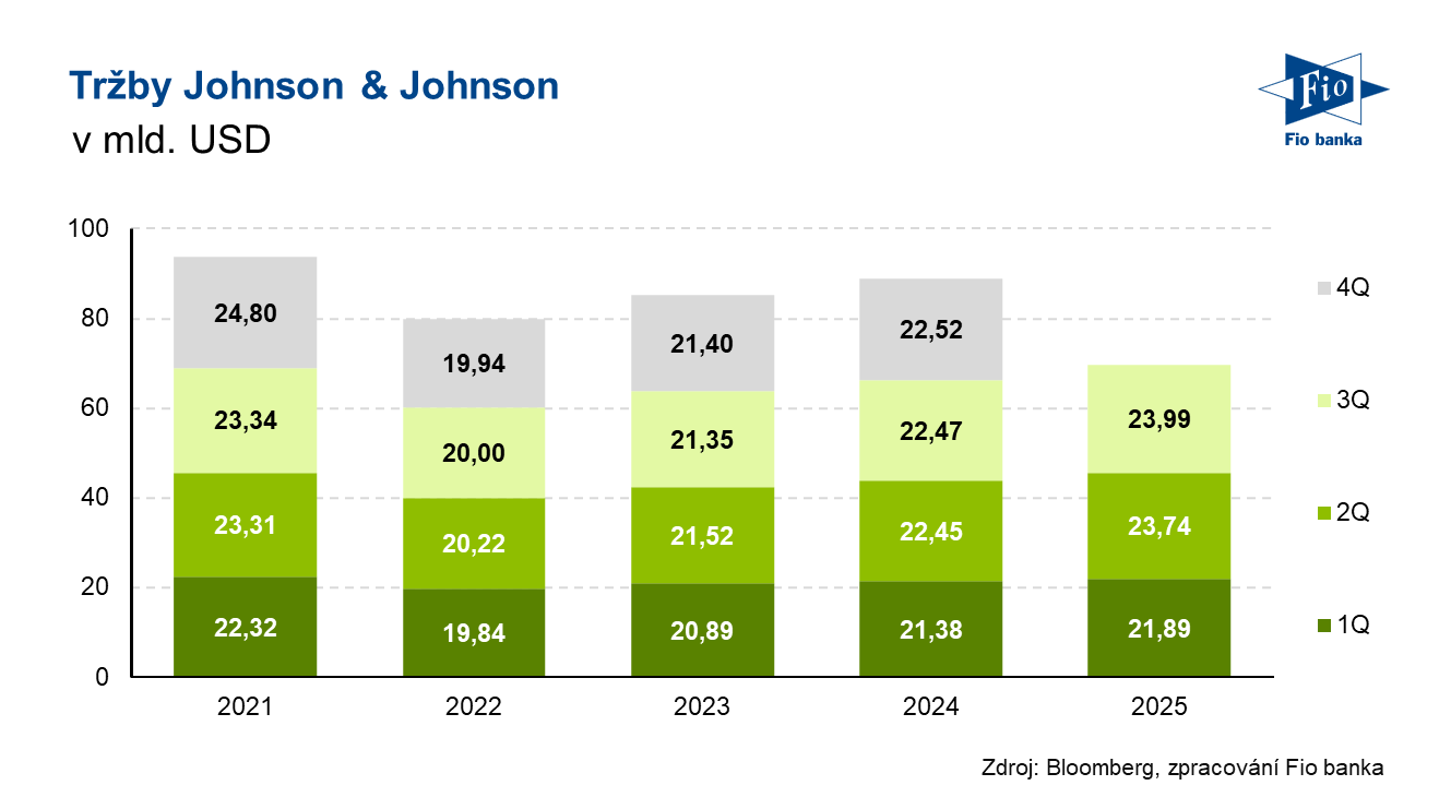 Farmaceutická společnost Johnson & Johnson zveřejnila výsledky hospodaření za 3Q 2025, které tržbami mírně překonaly očekávání. Společnost zároveň lehce navýšila svůj celoroční výhled tržeb, projekce očištěného zisku na akcii zůstala nedotčená z důvodu vyšších daňových nákladů. Johnson & Johnson plánuje během 18 až 24 měsíců oddělit svou pomaleji rostoucí ortopedickou divizi.
