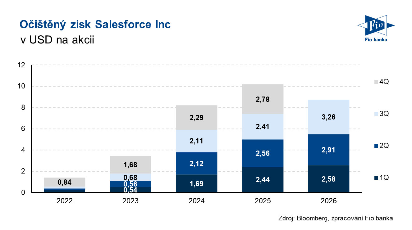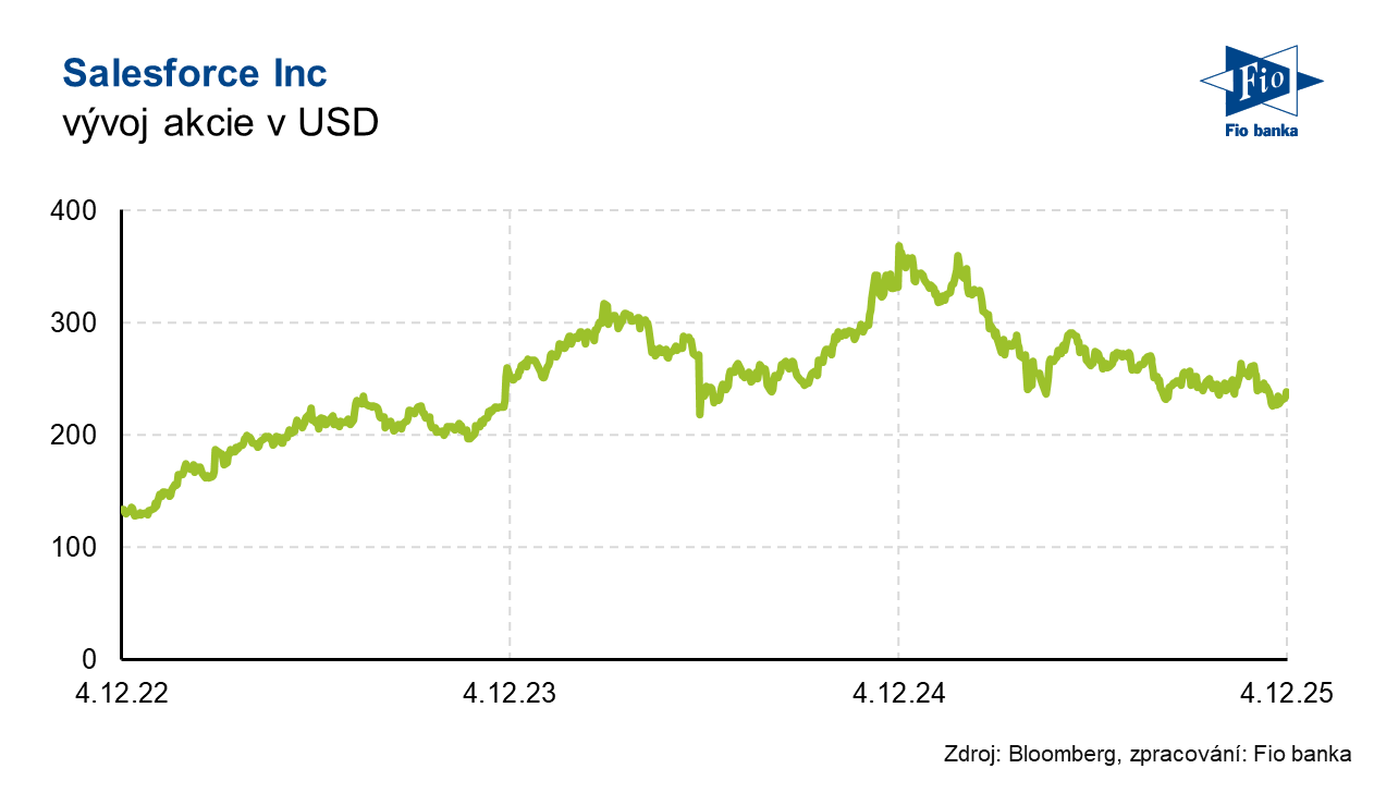 Salesforce, celosvětový lídr v oblasti poskytování softwaru řízení zákaznických vztahů (CRM), oznámil výsledky hospodaření za 3Q fiskálního roku 2026, který skončil 31. října 2025. Společnost navýšila svůj celoroční výhled. Analytici kladně hodnotí silnou dynamiku platformy umělé inteligence Agentforce. Pozitivně se do výhledu také propisuje nedávná akvizice společnosti Informatica.