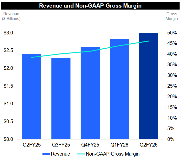 Americká technologická společnost Western Digital, která se zabývá výrobou pevných disků, oznámila své výsledky hospodaření za druhý kvartál fiskálního roku 2026, který skončil 2. ledna 2026. Tržby zaznamenaly meziroční růst o 25 % a očištěná hrubá marže zaznamenala meziroční nárůst o 7,7 p. b., když přetrvává silná poptávka v oblasti AI datových center.